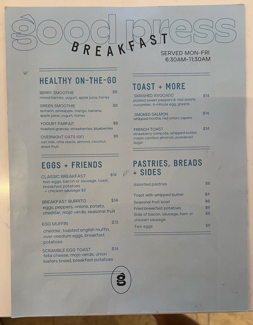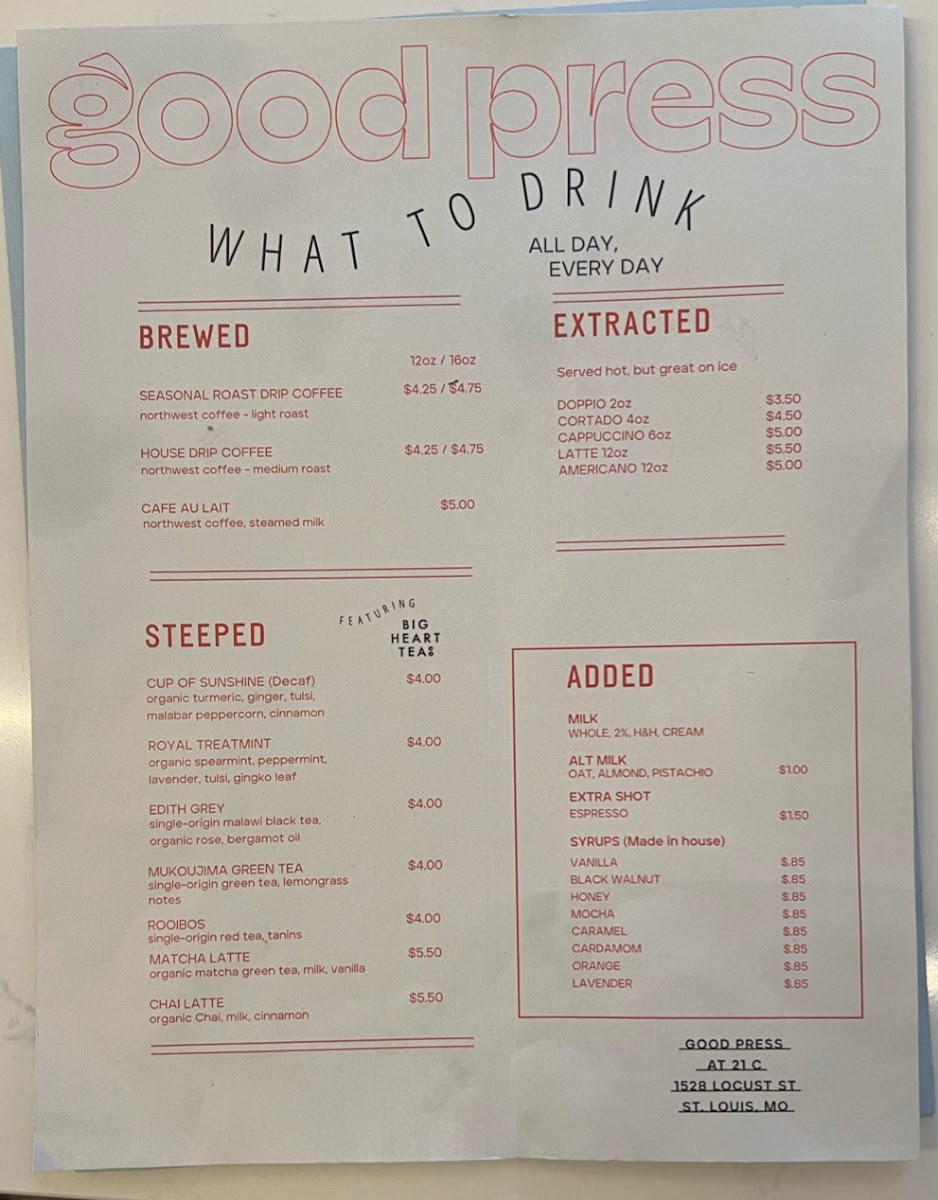 Good Press Cafe at 21c St. Louis Menu